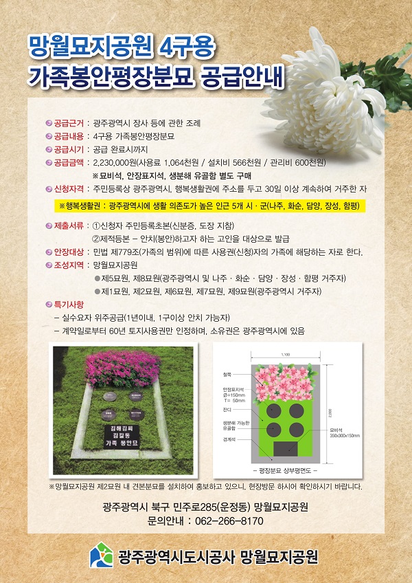망월묘지공원 4구용 가족봉안평장분묘 공급안내