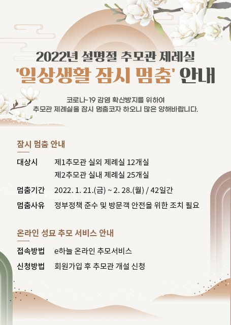 2022년 설명절 제례실 폐쇄안내(1.21~2.28)