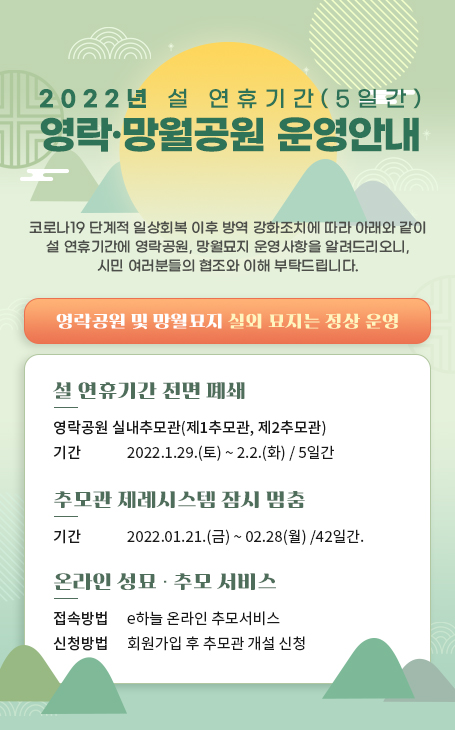 설 연휴기간 영락공원,망월묘역 이용 안내