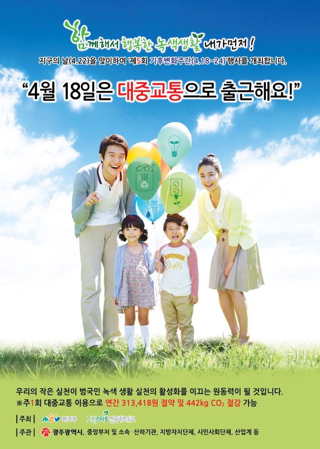 녹색출근길 캠페인 안내(4월 18일은 대중교통으로 출근해요!)