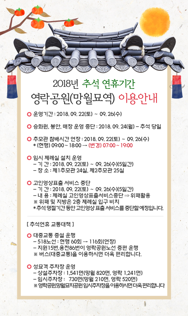 2018년 추석 연휴기간 영락공원(망월묘역) 이용안내